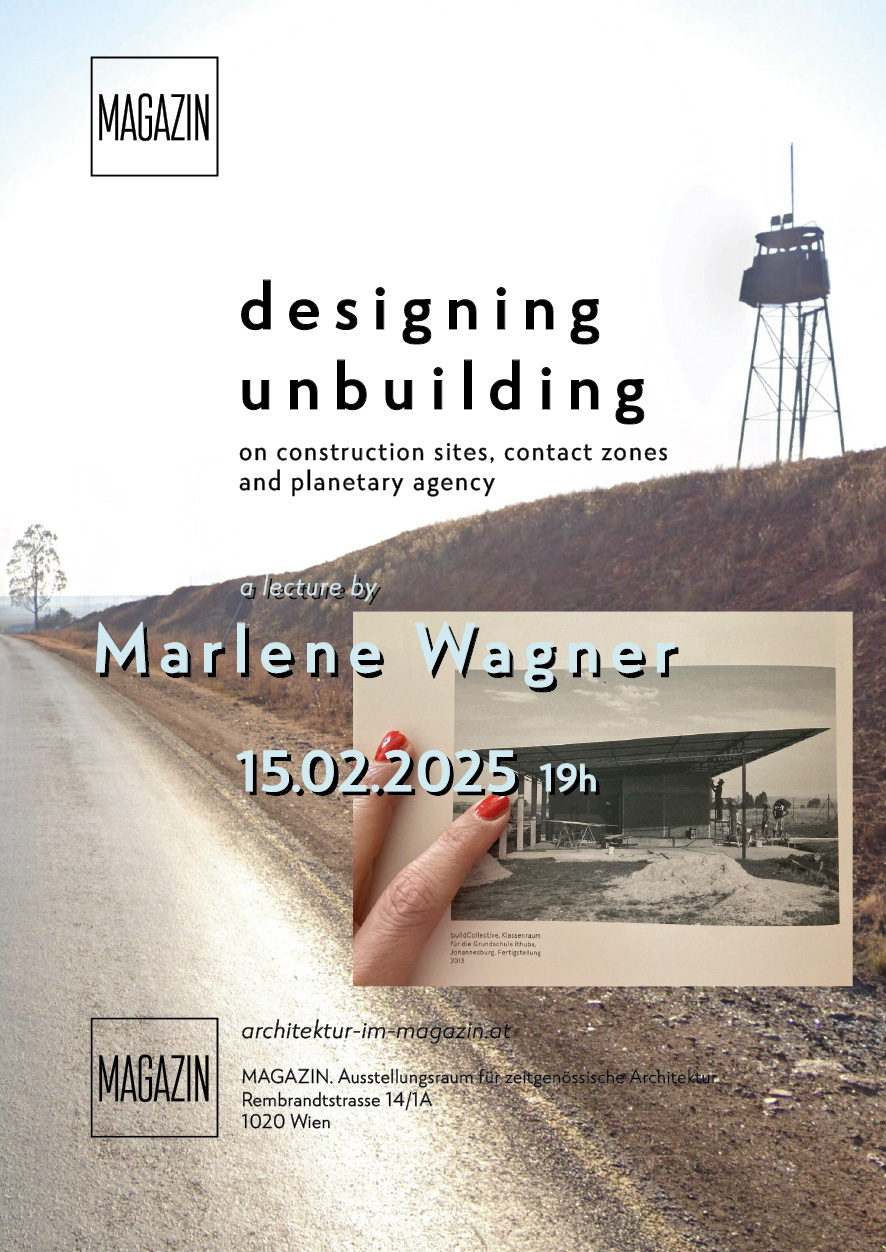 In her lecture, Marlene Wagner examines the complex relations between architectural practice and representation across continents, bridging theory and practice, participation and collectivity. Drawing from her PhD research, "Mapping 'Social Architecture' – Critical Reflection and Methodic Experiment on Cross-Cultural and Trans-Disciplinary Practice," she investigates transformative approaches through a critical re-reading within her own post-colonial archive. With selected transnational projects referred to as “New Social Architecture” and rooted in the “DesignBuild” movement of the early 2000s, she explores the knowledge culture of construction sites and questions the spatial concept of the contact zone. By sharing traces and narratives of beginnings, endings and entanglements she hopes to contribute to the discussion of the (im)possible mediation of planetary agency and effects of designing unbuilding.